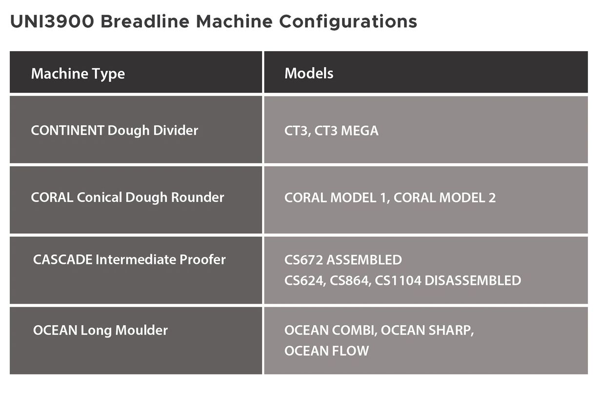The KREAZOT UNI3900 Bread Line delivers exceptional precision and reliability, ensuring consistent shaping, uniform portioning, and optimal texture for every loaf. Engineered with advanced technology and durable components, it handles dough gently to preserve quality while minimizing waste. Designed for high-capacity production, this line guarantees efficient performance and long service life.